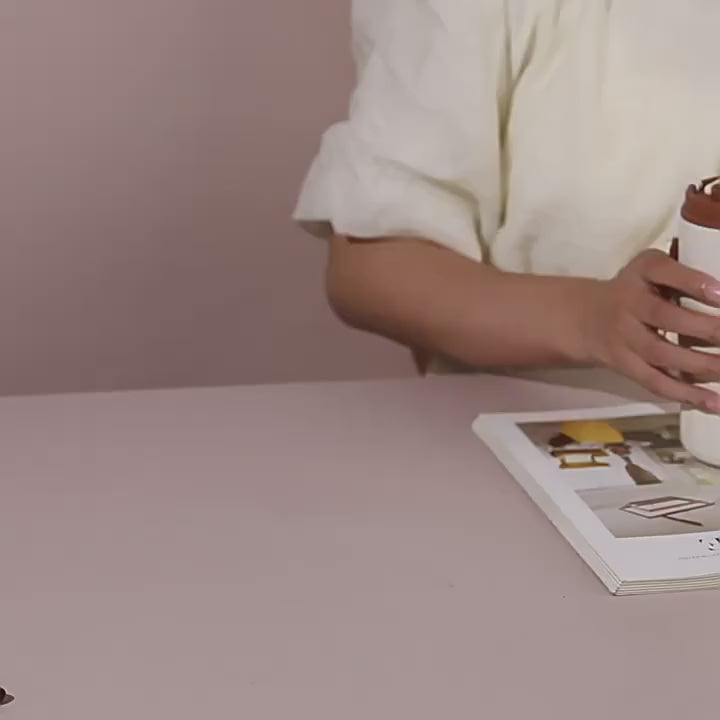 Caros clientes, ao receber o copo, pressionem cuidadosamente o botão para abrir a tampa.